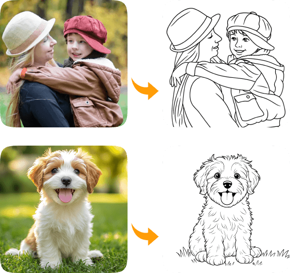 No design skills needed — just upload your image and get your custom Coloring Sheet ready in 10–30 seconds. Download instantly in PNG or PDF format, completely Free. Our simple, one-click workflow and batch generation mode save you hours of manual work — so you can focus on what really matters: creativity.